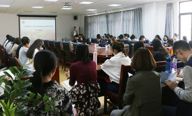 在庄严的《国际歌》中,第279期党的基本知识学习班开班典礼拉开了帷幕。外国语学院团委副书记李晓彤、数学科学学院团委书记齐晓敏、文学与新闻传播学院团委书记闫学聪分别宣读本期学习班本学院学生名单。接下来,许春颖向大家介绍了第279期党的基本知识学习班的开课计划和纪律要求。本期学习班将主要涉及入党动机、党的作风和纪律、习近平系列重要讲话解读等内容,中间将穿插分组讨论、参观学习、观看视频、小组学习等多种形式的交流学习。