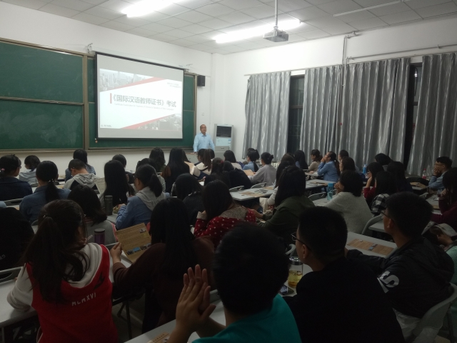 本站讯 10月20日晚六点,在文新楼104教室,汉语国际教育专业全国学术指导委员会委员、青岛大学国际教育学院史冠新教授,青岛大学中语国际认证考试培训中心马愠媛老师为我校学生开展国际汉语教师职业培训。