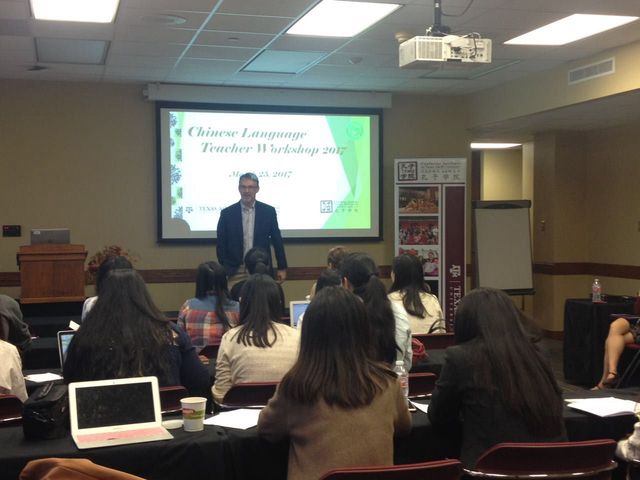 本站讯 当地时间3月25日, 德州A&M大学孔子学院举办了“2017 中文教师工作坊”。与会者包括德州南方大学、普文农工大学和德州A&M大学三所孔子学院的教师,莱斯大学、德州农工大学、当地学区的师生等总计30余人。德州A&M大学孔院的中方院长周红女士和外方院长柯兰迪 (Randy Kluver) 博士发表简短讲话 ,希望通过此次工作坊建立起大休斯敦地区的汉语教师社区、促进汉语教学经验的分享和交流,并希望为当地的汉语教学提供服务。