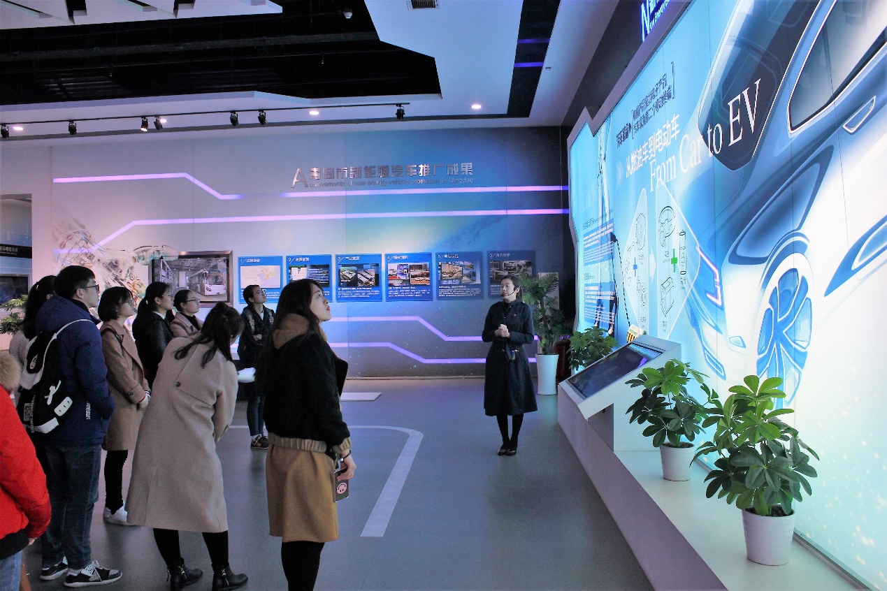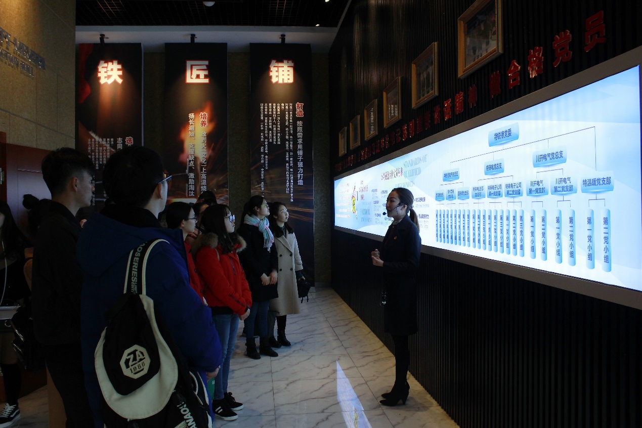 学习过程中,讲解员还向大家讲述了特锐德员工在恶劣环境下坚持完成青藏项目的故事,大家都深受触动,之后又跟随讲解员步入新能源生态科技馆进行参观。