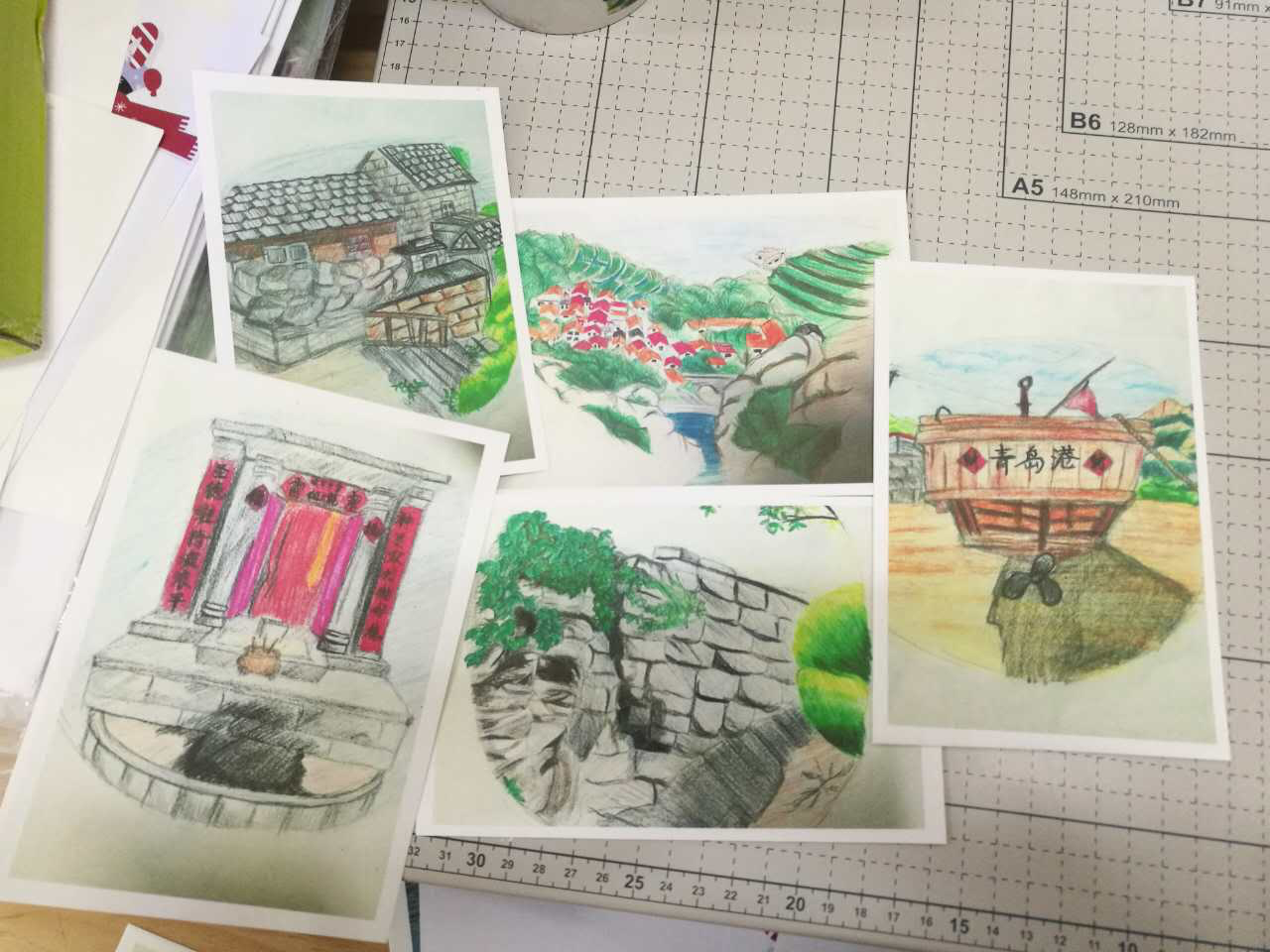 黄山村的文创产品(明信片、渔民包)