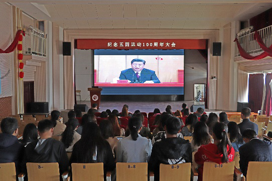 观看过程中,现场师生凝神静听、认真记录。大会结束后,青年学子纷纷发表心得体会。文新学院本科生党支部党员发展对象田娜(2017级汉语言文学)说:“五四运动是用青春之我创造青春民族的写照,爱国、进步、民主、科学的五四精神在今时今日依然指导着我们当代青年人前进。作为时代新青年,我们有责任继承和弘扬五四精神。每一代都有自己的机遇和机缘,而我们这一代生逢其时,重任在肩。青年的理想信念关乎国家未来,我们必须树立远大理想,唱响五四精神的青春赞歌,继续在爱国主义的伟大旗帜下,坚定理想信念,树立为建设富强民主文明和谐美丽的社会主义现代化强国奋斗的伟大理想。”