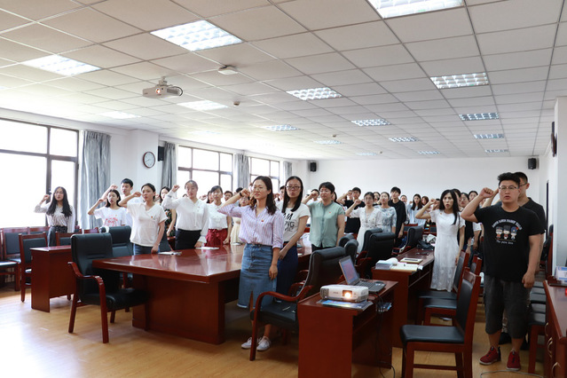 党课后,学院组织开展了毕业生党员教育活动。与会新党员在党旗下庄严宣誓,与会老党员一同重温了入党誓词。