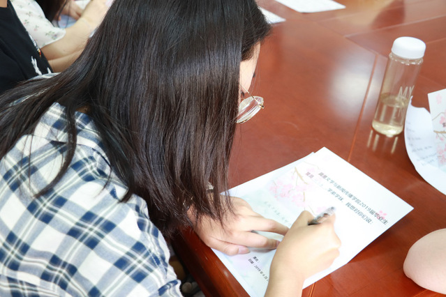 最后,学院党委为毕业生党员分发了精美的寄语卡,并组织毕业生党员寄语学弟学妹。毕业生党员们从坚定理想信念、修炼思想品德、做好科研学术、加强能力锻炼等方面认真思考并书写下了对学弟学妹们的建议、忠告和期望。