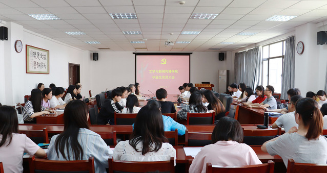 本站讯 6月26日下午,文学与新闻传播学院党委书记刘健于文新楼学术报告厅为毕业生党员讲述以“牢记宗旨,履职尽责,让人生更精彩”为主题的最后一堂党课。党课后开展了毕业生党员教育活动。全体毕业生党员及部分师生党员代表参加了会议。会议由学院党委副书记、副院长吉晓莉主持。