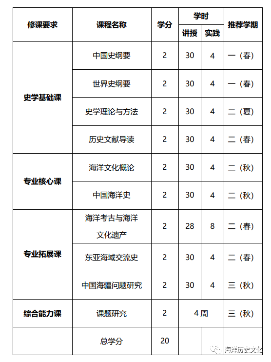 修读本专业全部课程(20学分)合格后可获得学校颁发的海洋历史文化微专业证书,并可替代通识课程4学分。