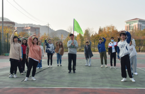 第三个项目“信仰不倒”,团队中每人接力前一名同学手中的“信仰之柱”,以最先轮完一圈的队伍获胜。此项目旨在锻炼同学们的大局意识,引导学生骨干做到纵览全局、协调各方。在激烈的比拼下,最终此项目由“沙子口办事处”胜出。