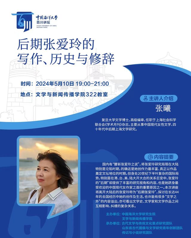 【百川讲坛】张曦:后期张爱玲的写作、历史与修辞