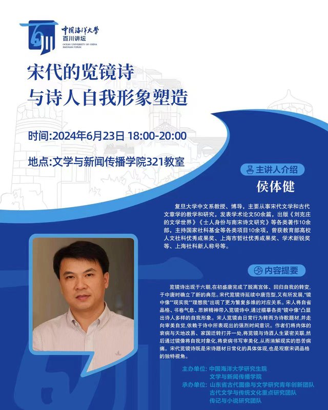 【百川讲坛】侯体健:宋代的览镜诗与诗人自我形象塑造