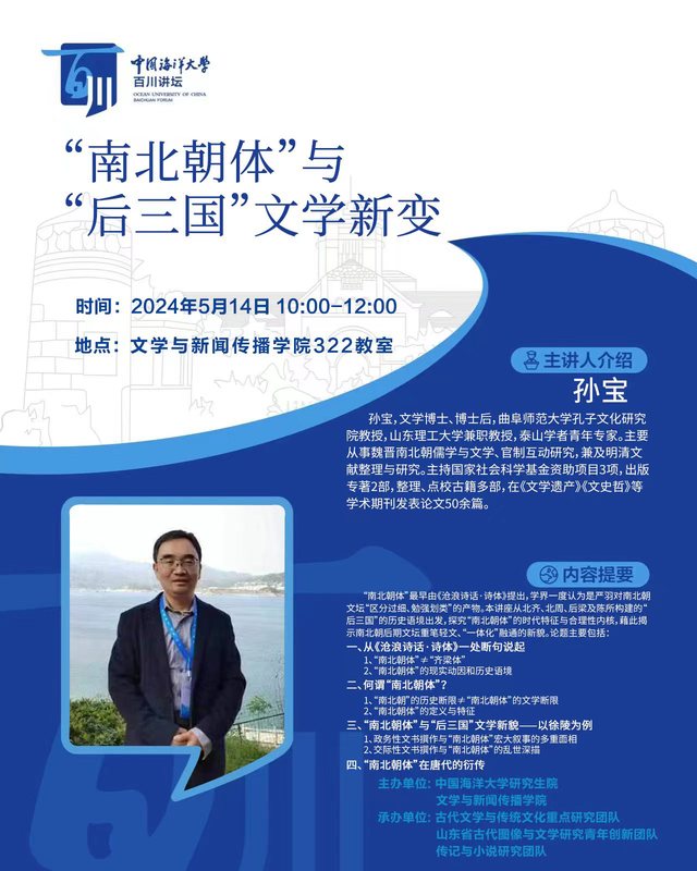 【百川讲坛】孙宝:“南北朝体”与“后三国”文学新变