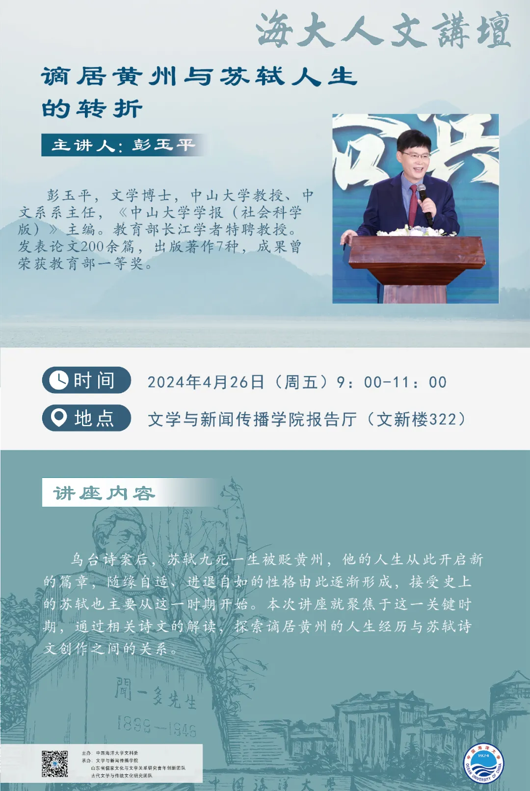 【海大人文讲坛】彭玉平 | 谪居黄州与苏轼人生的转折