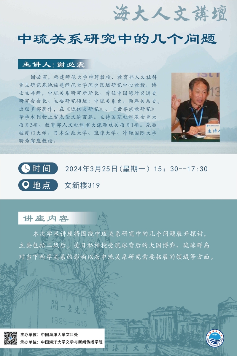 【海大人文讲坛】谢必震 | 中琉关系研究中的几个问题