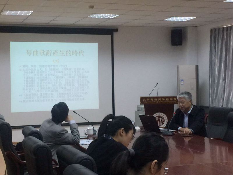 最后,刘怀荣教授简要介绍了赵敏俐教授近年来在中国古代歌诗研究方面的突出成绩,并向大家推荐赵先生的歌诗研究著作——《中国古代歌诗研究——从诗经到元曲的艺术生产史研究》。因琴为古代圣贤所钟爱,他建议有兴趣的同学可以学习古琴,以古代圣贤为榜样,努力提高个人修养,传承中国优秀传统文化。