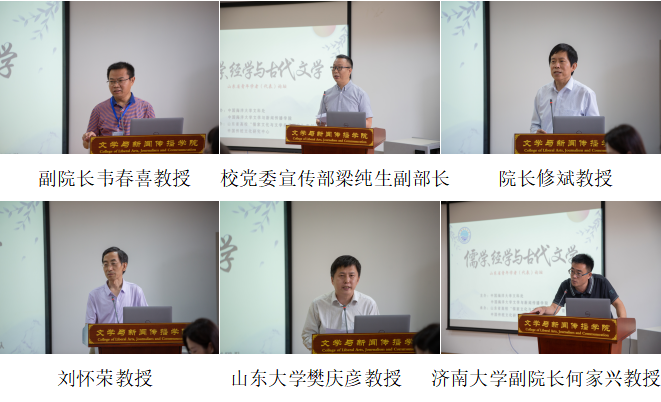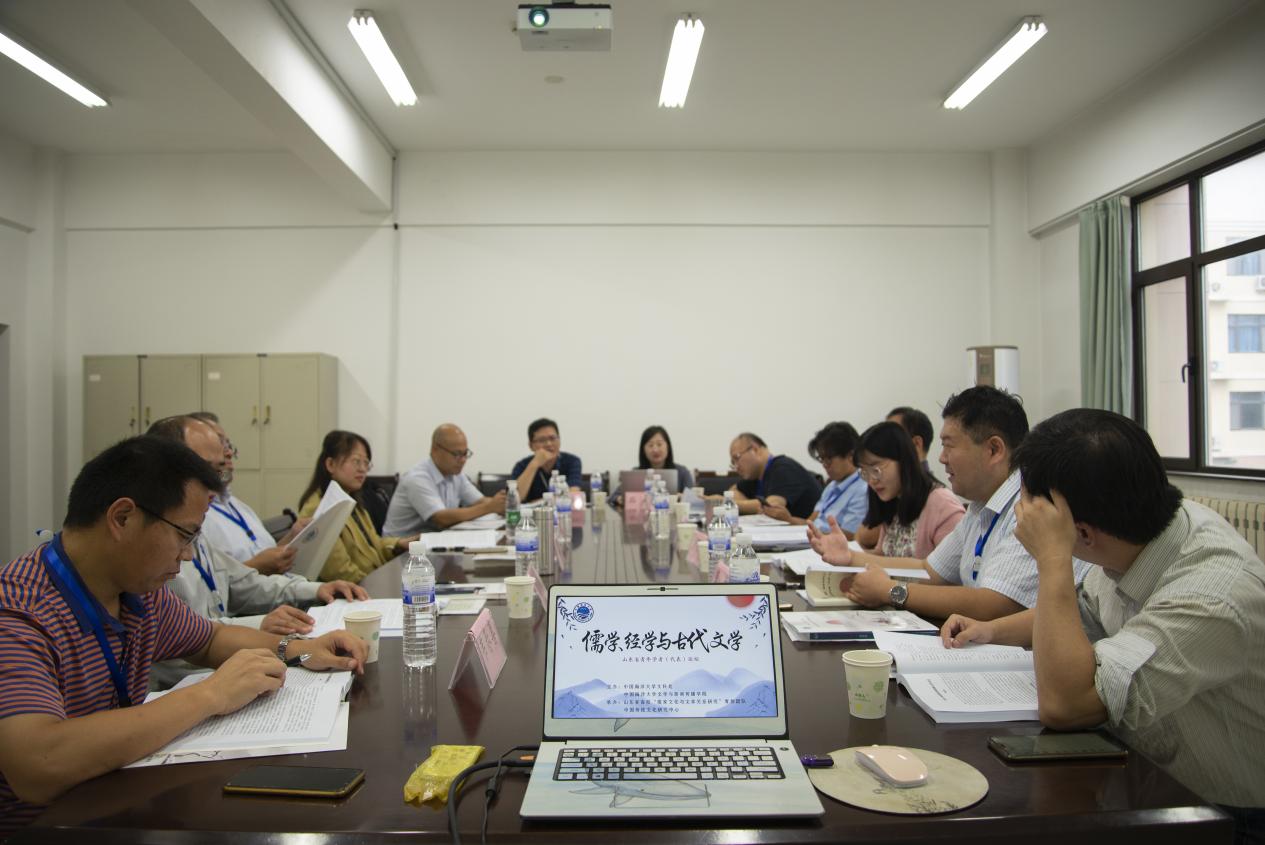 开幕式结束后,到会专家分为两组,在不同的会场进行学术探讨。论坛第一组在文学与新闻传播学院322会议室召开,参与研讨的学者主要有何家兴教授、朱国芳副教授、刘书刚副教授、王鹤琴副教授、宁登国教授、史大丰副教授、孙玲玲博士、刘冰莉副教授、李婧副教授、刘磊教授、吕辛福副教授、郭超颖副教授、徐昌盛副教授、刘少帅博士、孙宝教授、马芳副教授等,所讨论的论文涉及《礼记》《史记》《国语》《诗经》《文心雕龙》等多部文学作品,讨论了楚简韵文、住世罗汉、“鲁学”北渐与齐鲁古道、《游子吟》与孝道文化、易学视角下的阮籍《咏怀诗》创作主旨等多类型的学术问题。
