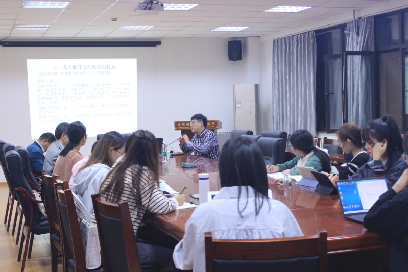 10月7日晚,上海师范大学都市文化研究中心研究员陆路先生应邀在开云电竞网址文学与新闻传播学院的学术报告厅为海大师生带来一场题为“中古五言诗文体观的变迁”的学术讲座。本次学术讲座由刘怀荣教授主持,韦春喜教授、马芳副教授等多位老师及本、硕、博共计20余人参加了本次学术讲座。