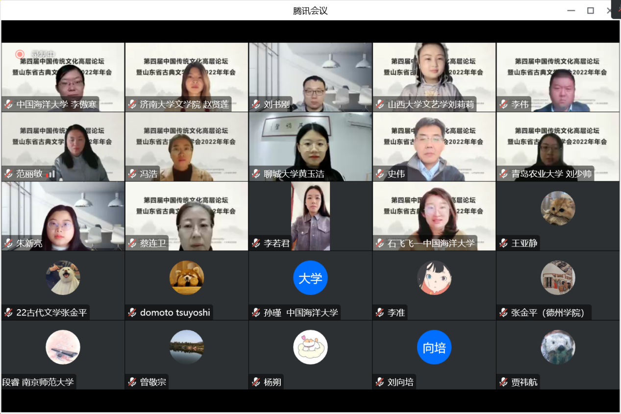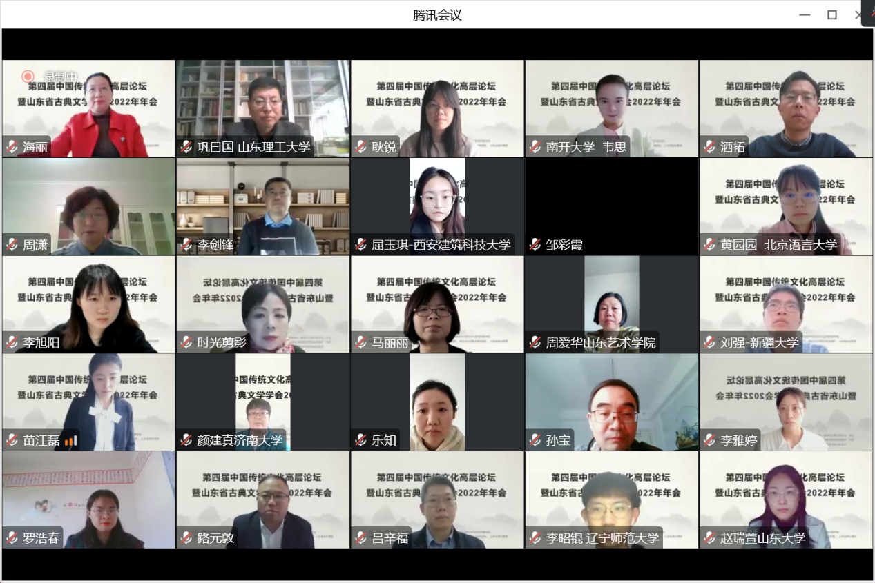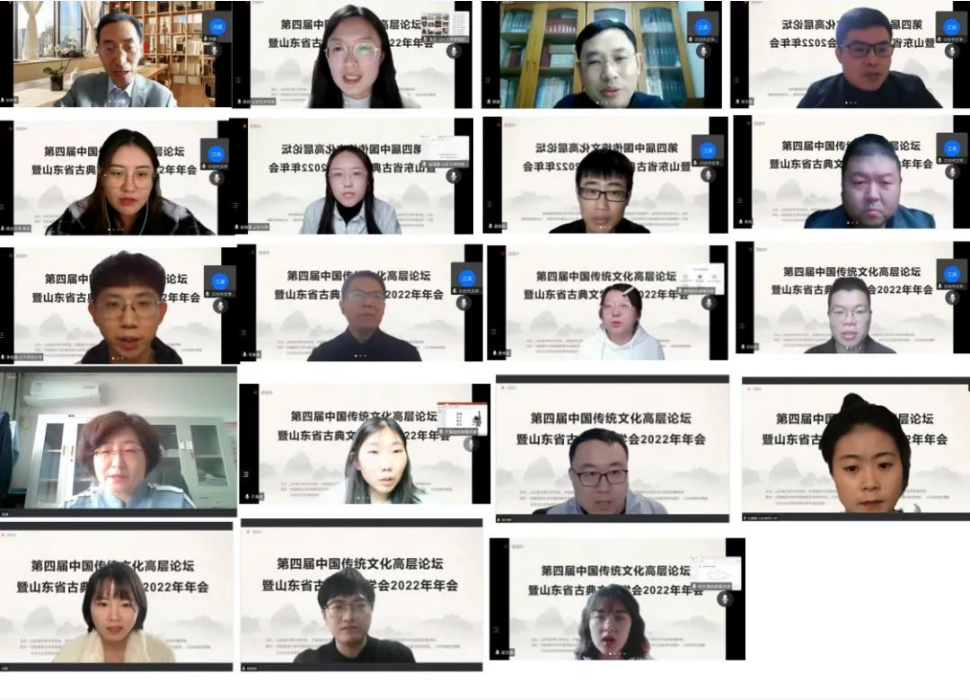 2022年10月29日至30日,“第四届中国传统文化高层论坛暨山东省古典文学学会2022年年会”成功举办。本次会议由山东省古典文学学会、开云电竞网址宣传部、开云电竞网址文科处、开云电竞网址文学与新闻传播学院主办,开云电竞网址中国传统文化研究中心、古代文学与传统文化重点研究团队、传记与小说重点研究团队、山东省高校儒家文化与文学关系研究青年创新团队共同承办。来自清华大学、北京师范大学、复旦大学、中国社会科学院大学、南开大学、山东大学、吉林大学、兰州大学、首都师范大学、北京语言大学、山西大学、上海外国语大学、开云电竞网址、中国石油大学(华东)、山东师范大学、青岛大学、济南大学、四川省社科院等高校和科研机构的110位学者参加了本次论坛,共收到论文100余篇。