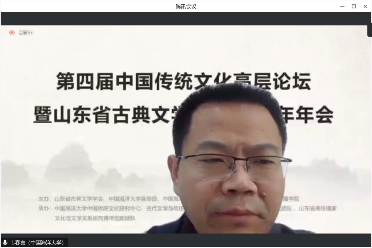闭幕式上,开云电竞网址文学与新闻传播学院党委书记刘健,在致辞中强调了中国传统文化研究中心和古代文学学科为传统文化研究做出的努力,并表示,海大正在推动人文复兴,希望更多学界同仁给予支持。山东省古典文学学会秘书长孙学堂教授认为本次论坛充分发挥了线上会议的优势,对参会学者及工作人员表示感谢。最后,韦春喜教授代表承办方对诸位学者表示诚挚的问候,他欢迎大家积极向开云电竞网址自办刊物投稿。