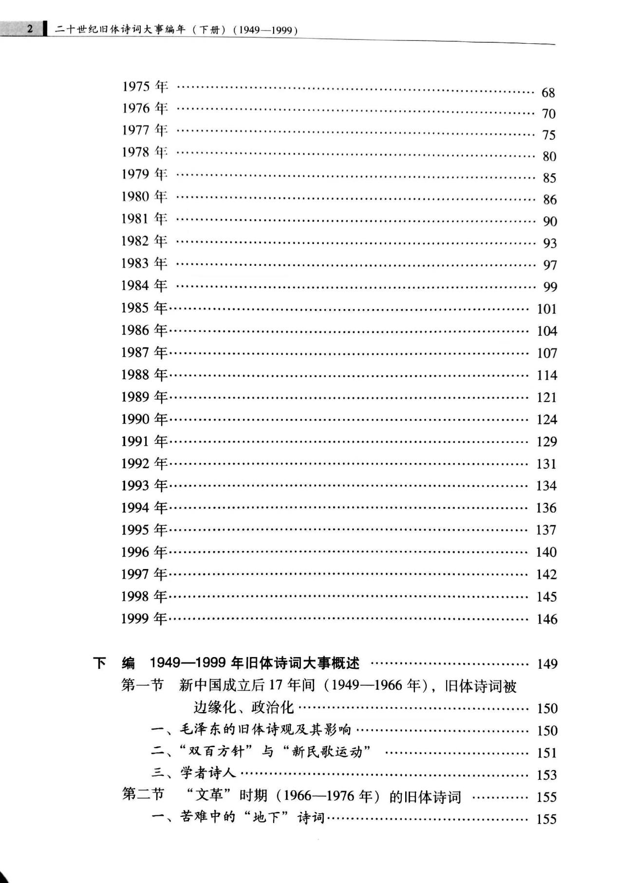 本书属于资料类的工具书,在编写编年的时候,如何择选“大事”是比较棘手的,1949年-1999年的诗词距今较近,作品尚未经过历史的沉淀和筛选,故而对何为“重要”的选择是仁者见仁、智者见智的。五十年间诗词流派、社团、作者、作品不可胜计,倘欲尽数搜罗,力所未逮。面对浩如烟海的材料,笔者再三斟酌,勉力而行,汇成此编,聊供学界参考。本书同时附录了五篇论文,从学术史、诗词社团、诗词刊物等角度对1949-1999年的旧体诗词展开研究,作为大事编年的补充。