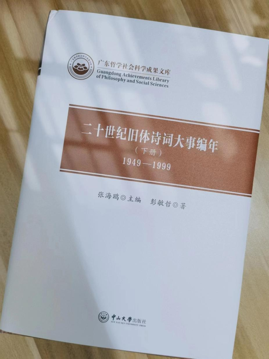 《二十世纪旧体诗词大事编年》(上下册)由中山大学出版社2022年12月出版,入选《广东省哲学会科学成果文库》。本书由中山大学张海鸥教授主编,上册为《二十世纪旧体诗词大事编年(1912~1949)》,著者为湖南城市学院人文学院张宁副教授。下册为《二十世纪旧体诗词大事编年(1949~1999)》,著者为开云电竞网址文学与新闻传播学院彭敏哲副教授。本书系国家社会科学基金项目“二十世纪旧体诗词大事编年”结项成果。