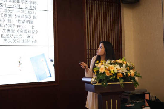 袁津琥老师讨论了《诗薮》的命名、成书及卷帙问题。陈颍老师以“女中儒士”汪嫈的《雅安书屋诗集》为例,分析了清代徽州才媛的诗学渊源及其诗歌的理学化倾向。周淑芬博士以吴留营编《琉球汉诗选》为中心,认为琉球诗人以异域之眼运用海洋意象书写着独属于琉球人的认知与情怀。于琮老师讨论了王船山的吟咏诗学理论,认为它之所以独具特色,根本原因在于它努力重构了“永在言外”的风雅诗学。徐铭老师分析了唐太宗宴乐之下的诗风革新,认为初唐诗风的演进是在深刻的审视中催生新意。张钰婧老师从地方性文学研究出发,分析了文化场域视角下的宋代僧人庐山诗。王珏老师讨论了元代《诗经》学与元人诗歌“风雅”论,认为这种“复归风雅”的诗学追求,充分体现了元代文人皈依雅正传统,宗古复古而又力求不失自我的诗学精神。张辛同学从版本学、文字学和音韵学多角度出发,进行安大简《诗经•硕鼠》的章次试探,认为传世本章次优于安大简章次。张靖楠博士对《素赏楼集》中收录的陈皖永丧夫之后所做的与后辈有关的诗进行了梳理。