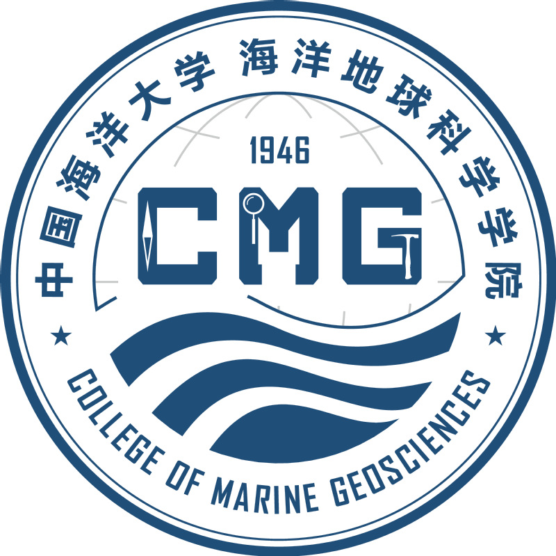 CMG字样有两层含义:一是学院英文名称“College of Marine Geosciences”的缩写;二是地质传统三大件的缩写(罗盘Compass、放大镜Magnifying lens、地质锤Geological hammer),每个字母中镶嵌对应地质用品,代表地质人引领方向、探究入微和坚忍不拔的品格,寓意学院的文化特征、精神内涵和光荣历史。