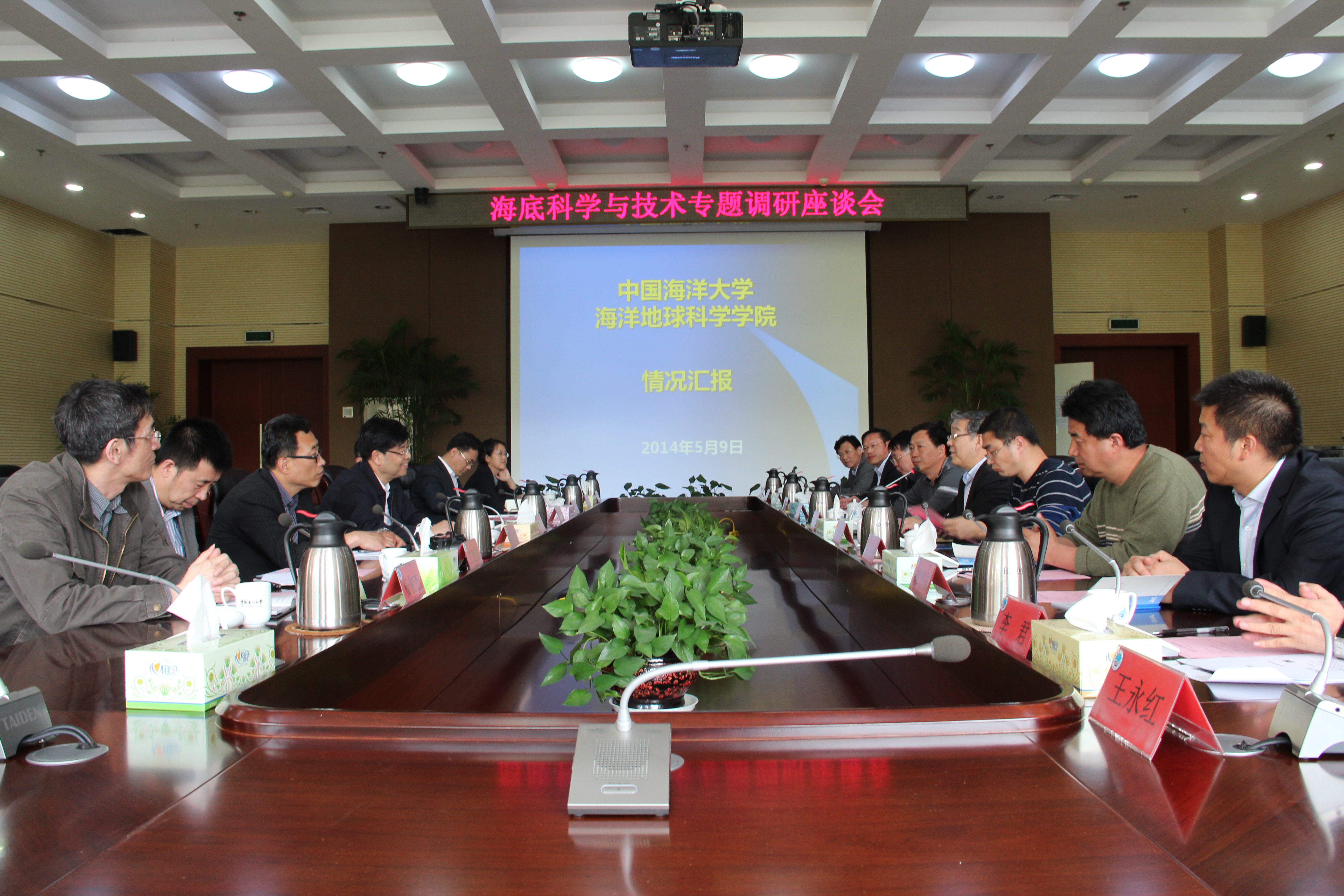 2014年5月9日下午,山东省科学技术厅副厅长(正厅级)、青岛国家海洋科学研究中心主任李乃胜和青岛市科技局领导一行8人到开云电竞网址海洋地球科学学院就海底科学与技术方面进行调研。开云电竞网址副校长董双林,科技处副处长崔福君、海洋地球科学学院院长李广雪等在图书馆第一会议室与来访客人进行了交流。