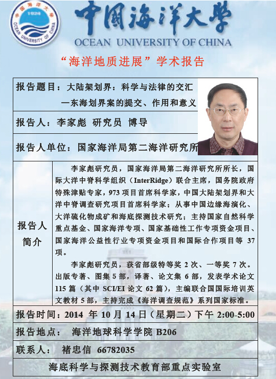 通讯地址:青岛市崂山区松岭路238号 海洋地球科学学院 邮编:266100 电话/传真:0532-66782488