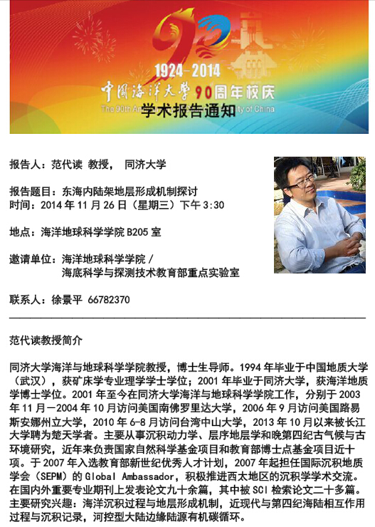 通讯地址:青岛市崂山区松岭路238号 海洋地球科学学院 邮编:266100 电话/传真:0532-66782488
