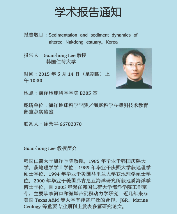 通讯地址:青岛市崂山区松岭路238号 海洋地球科学学院 邮编:266100 电话/传真:0532-66782488