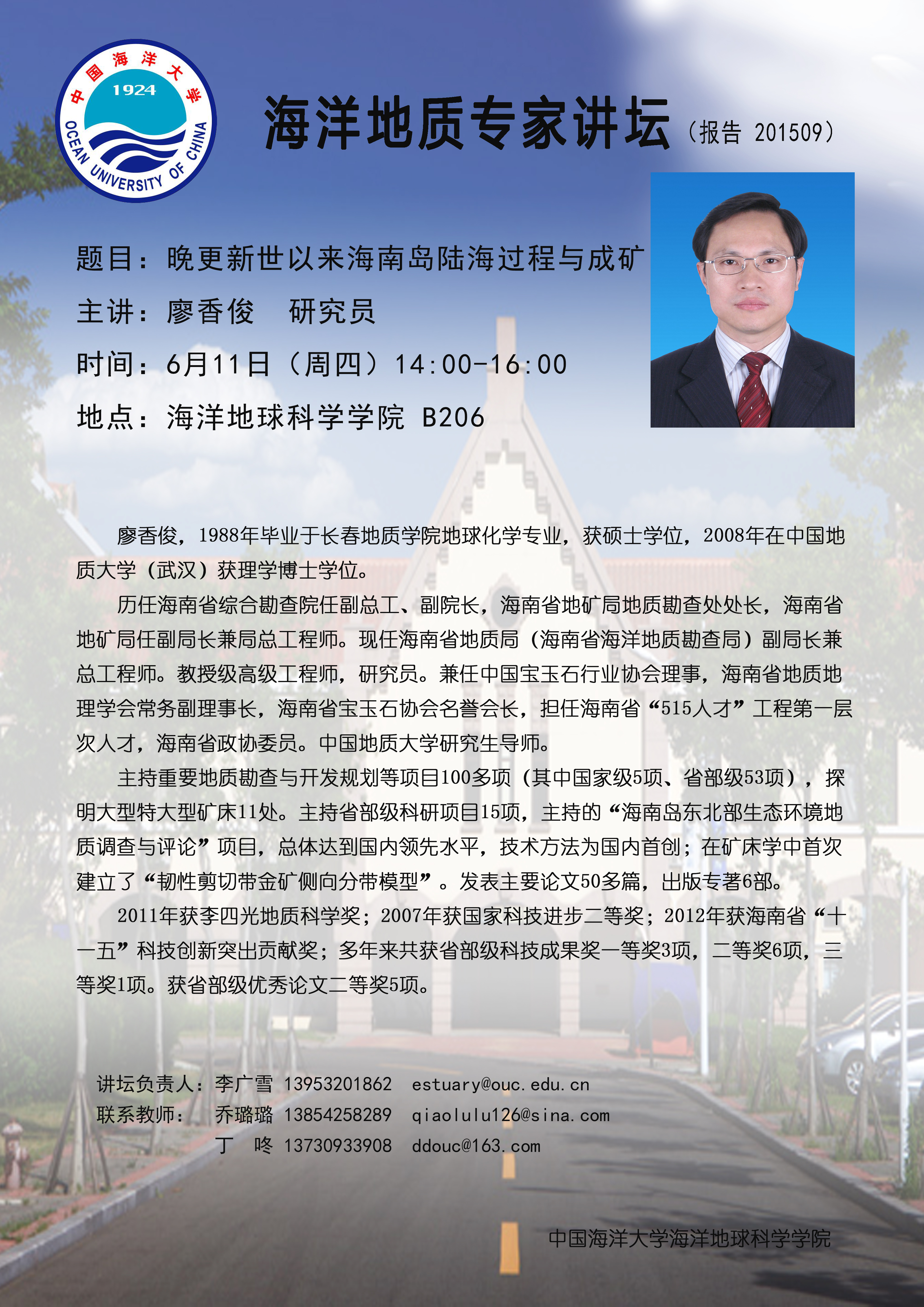 通讯地址:青岛市崂山区松岭路238号 海洋地球科学学院 邮编:266100 电话/传真:0532-66782488