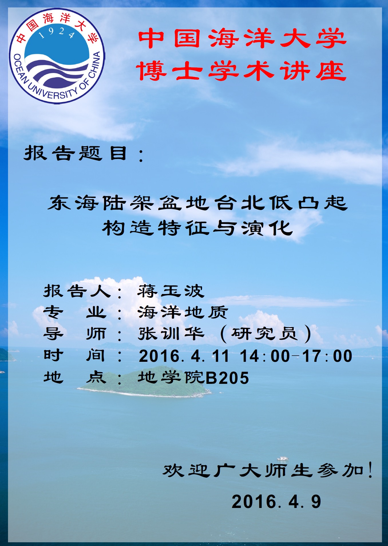 通讯地址:青岛市崂山区松岭路238号 海洋地球科学学院 邮编:266100 电话/传真:0532-66782488