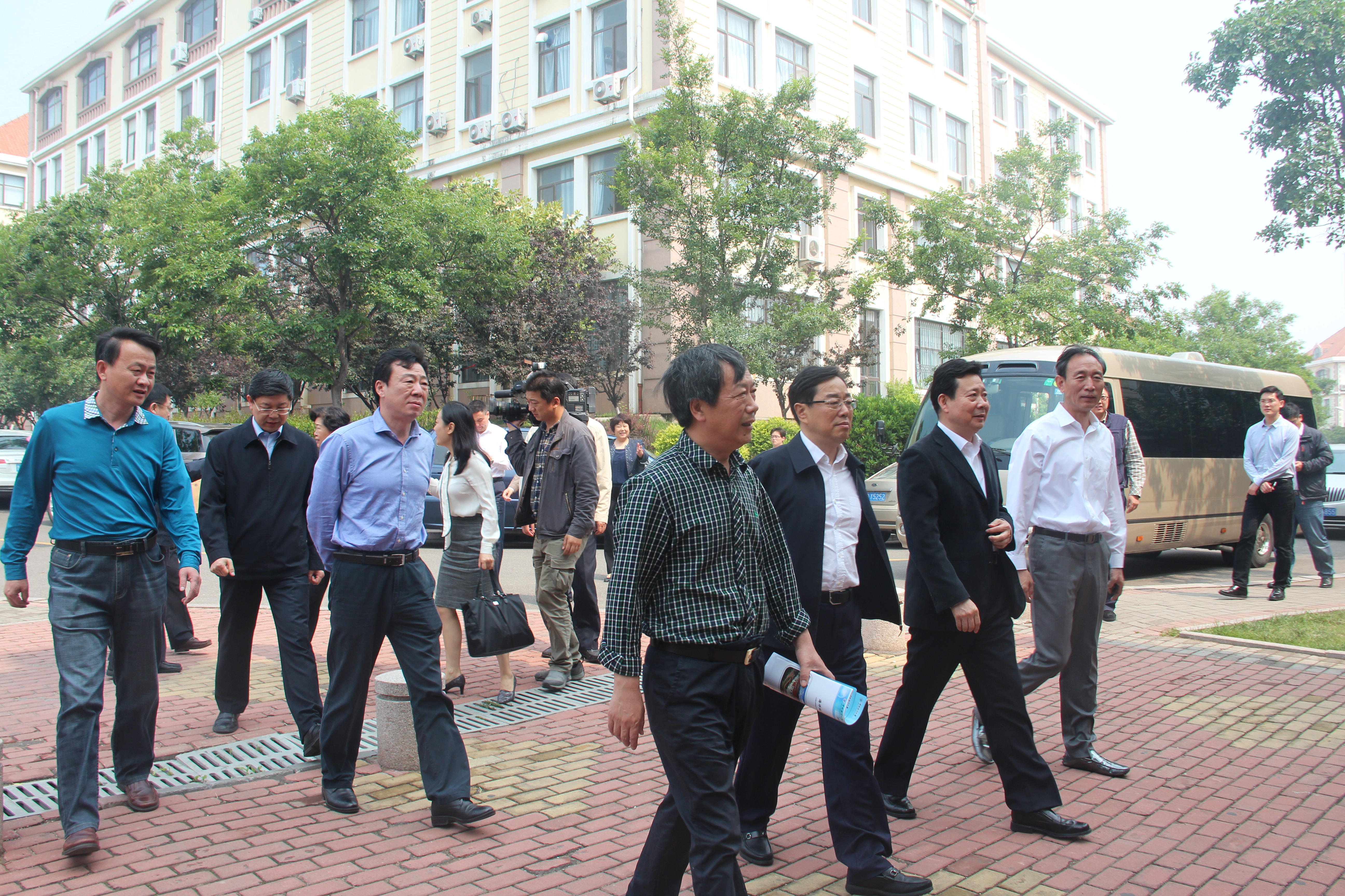 杨东奇部长(前排左二)、李群书记(前排右二)在鞠传进书记(前排右一)的陪同下参观地学院
