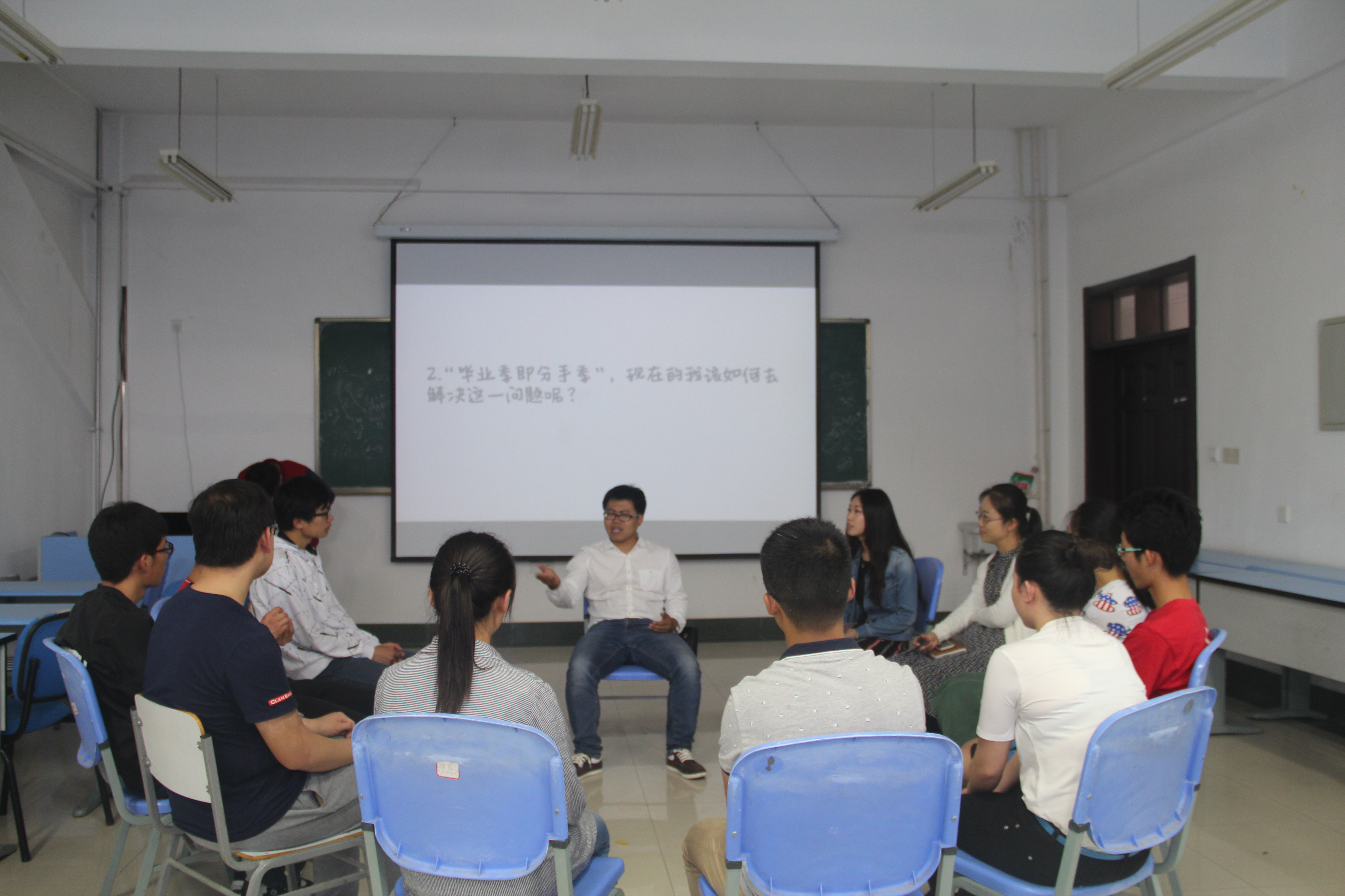 工作人员还从毕业生同学中收集了几个问题来进行现场解答,有人对“毕业季即分手季”感到很忧虑,有人十分不舍离开校园与同学,有人初踏社会感到陌生与自卑,吴老师一一做出了解答。除此以外,吴老师还和现场参加的同学们进行了面对面的交谈,并鼓励大家把心中的想法大胆地说出来,直面内心的问题与困惑。他说,不管是在学习还是工作中,我们都要学会客服焦虑心理、盲从心理、攀比心理、自负心理、依赖心理,只有这样才能逐渐成为一个更好的自己。在吴老师的心理建议下,大家受益匪浅。