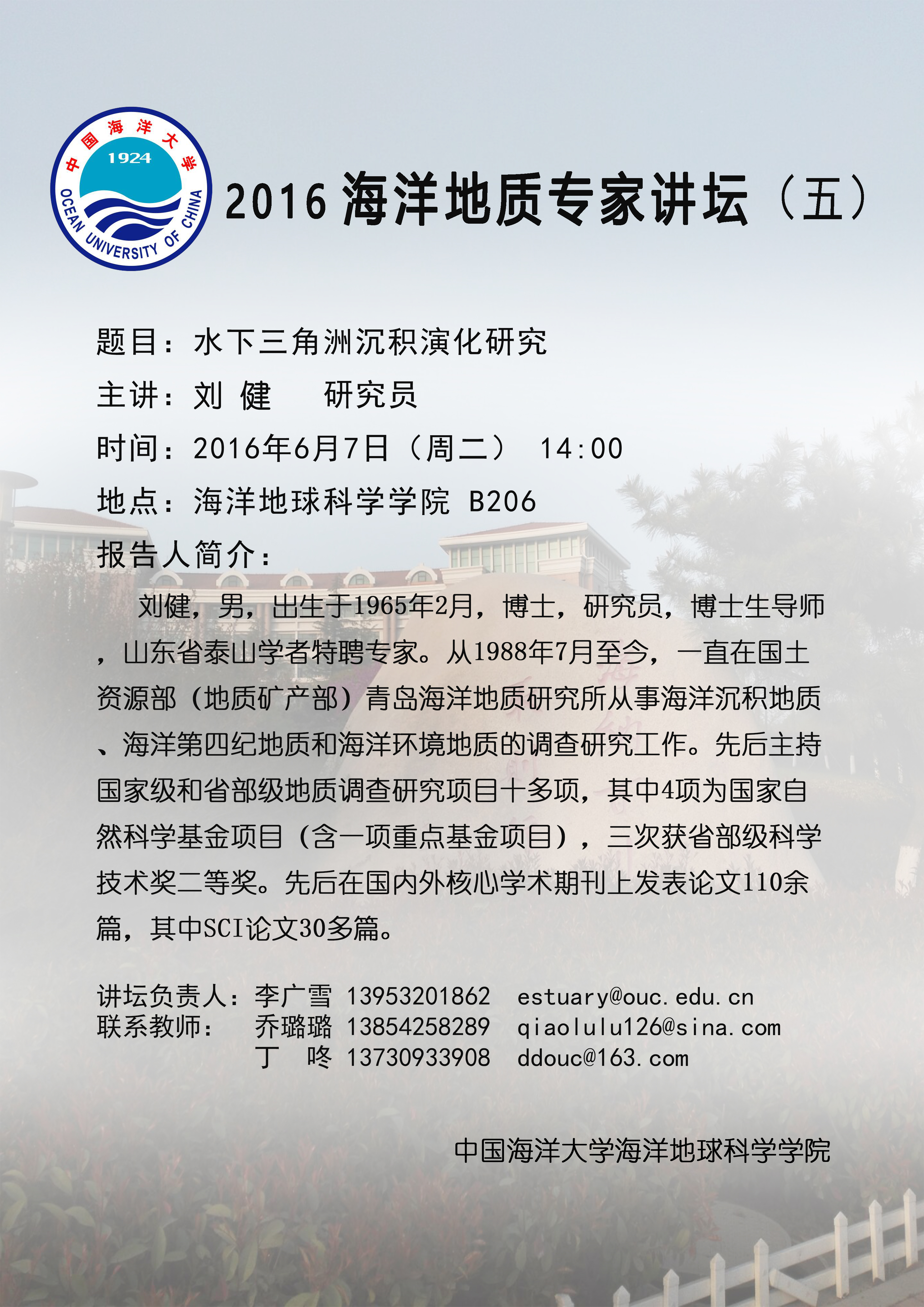 通讯地址:青岛市崂山区松岭路238号 海洋地球科学学院 邮编:266100 电话/传真:0532-66782488