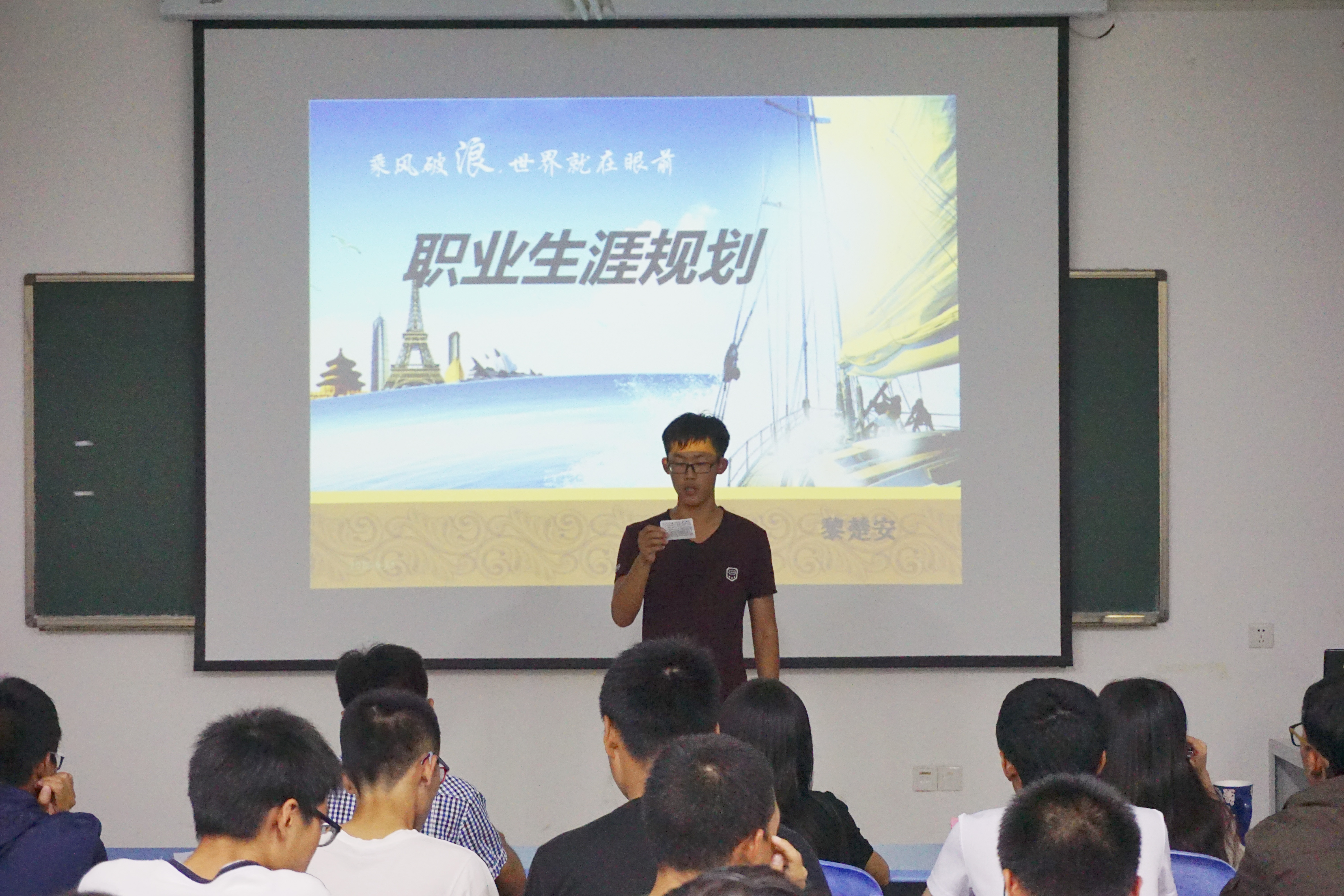 本站讯 9月23日晚,随着夜幕的缓缓降临,由海洋地球科学学院(以下简称“地院”)筹办的第一届职业生涯规划大赛初赛模拟比赛于地院院楼顺利举行。本次活动是由勘查技术与工程2016级(以下简称“16勘工”)的闫通所主持,地院团委副书记郭子悦老师作为本次活动的嘉宾。本次活动旨在进一步普及大学生职业生涯规划知识,帮助在校大学生科学合理地规划大学学习与生活。