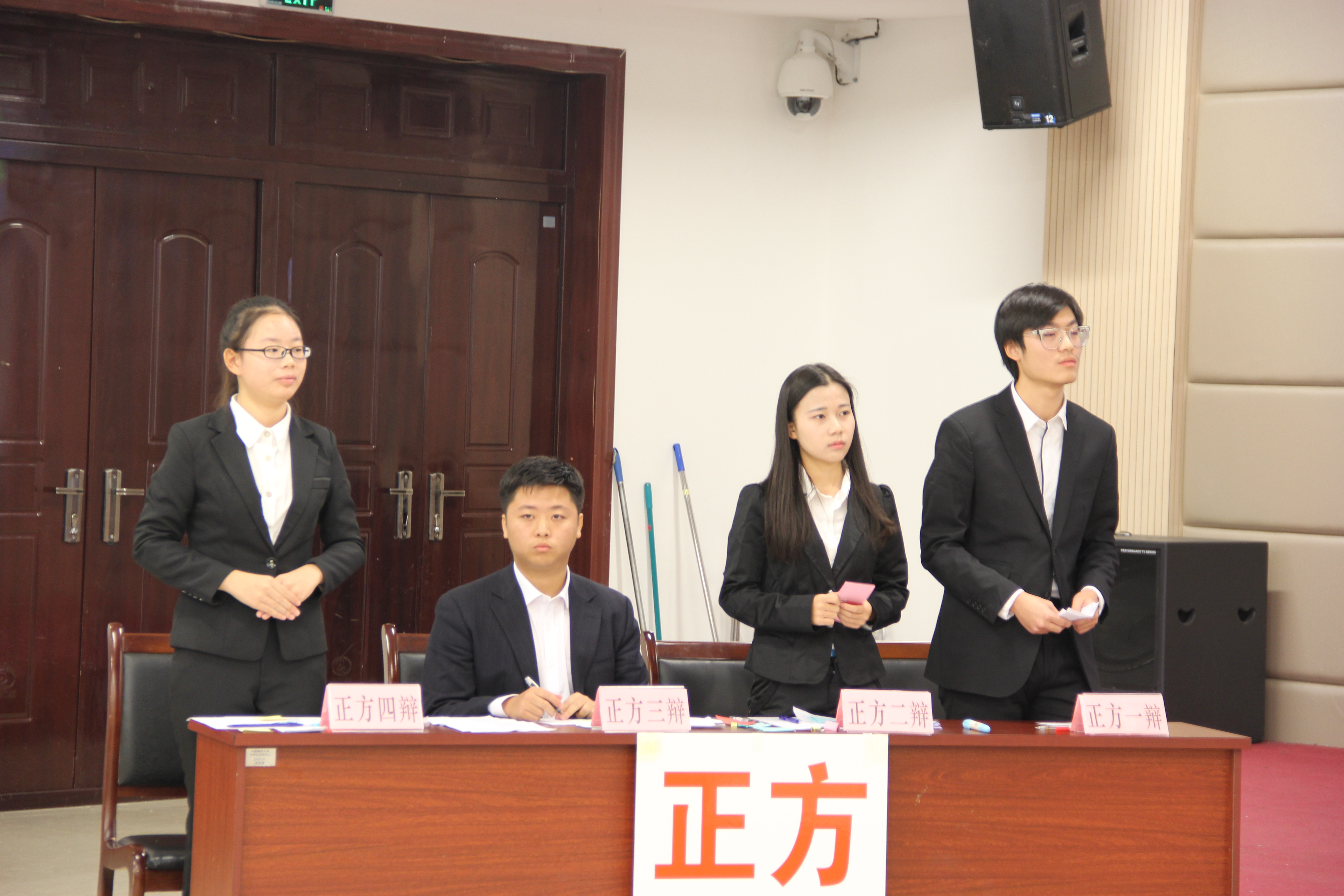 辩论赛从9:00正式开始。双方辩手互致敬意后,场上的氛围紧张起来。