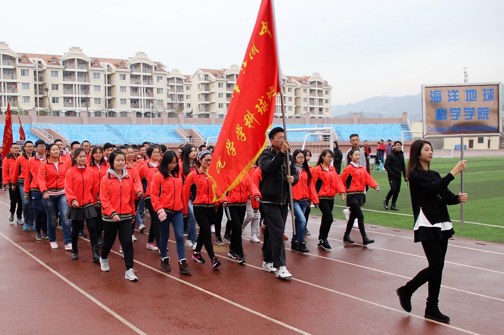 本站讯11月26日,由海洋与大气学院、化学与化工学院、海洋地球科学学院、环境科学与工程学院、材料科学与工程研究院联合举办的2016年五院运动会在东区操场成功举办。出席本次开幕式的嘉宾有海洋与大气学院团委副书记孙自忠、海洋地球科学学院(以下简称地院)团委副书记郭子悦、化学化工学院团委副书记李思潼、环境科学与工程学院团委副书记西国庚、材料科学与工程研究院团委副书记张蔚圣。本着展示海大学子朝气蓬勃、积极向上的风貌为目的,本次比赛吸引了五院的广大学子的热情参与,参赛的同学竭尽所能,在田径场上不单单赛出了属于自己的成绩,更是赛出了自己的风格,为自己所在班级赢得了荣光。