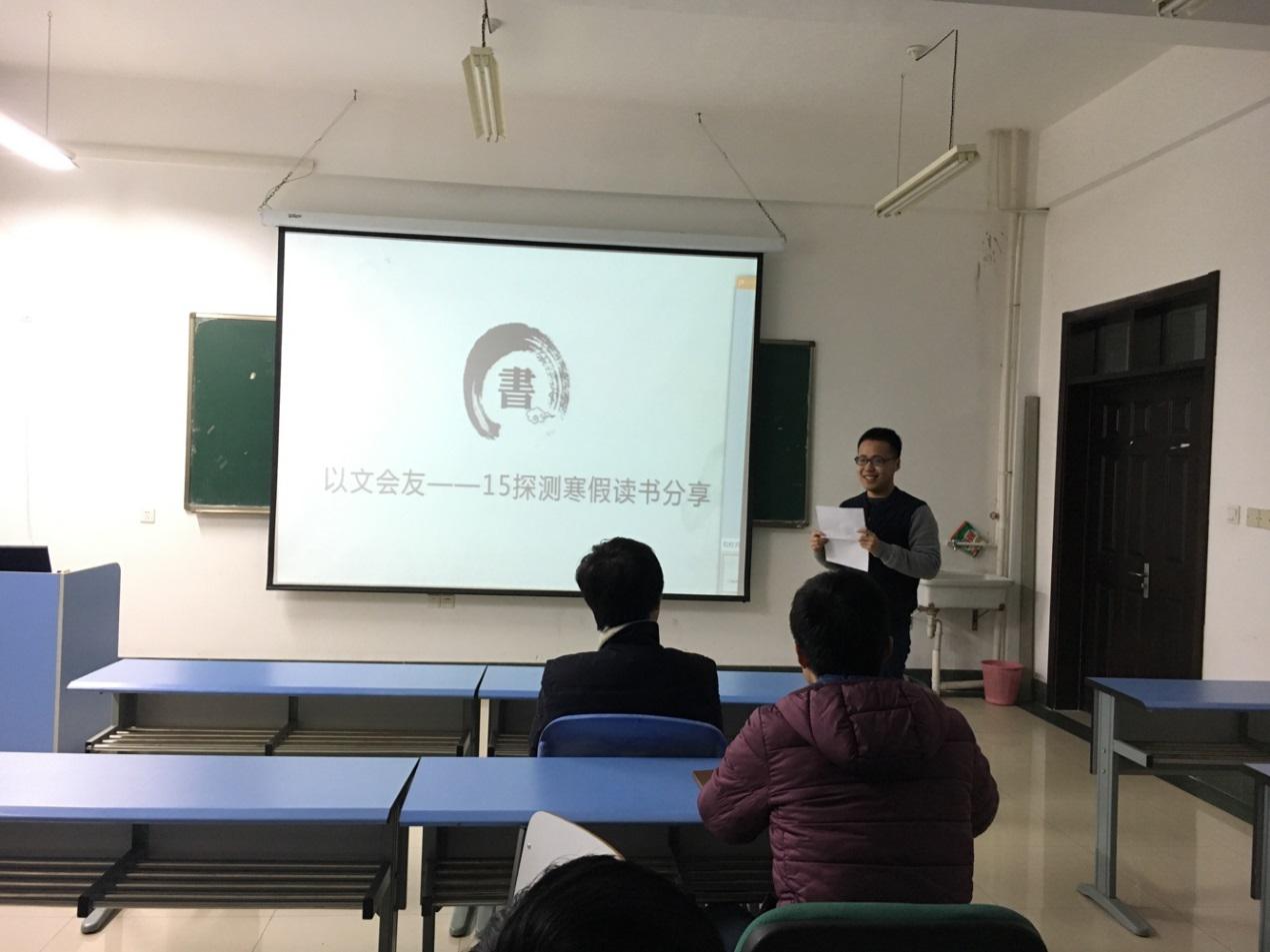 一千个读者便有一千个哈姆雷特,为了促进学术交流,让党支部成员更深刻了解读书的意义,本支部于2017年3月11日于地学院A414开展了“以文会友”——15探测党支部寒假读书分享会。