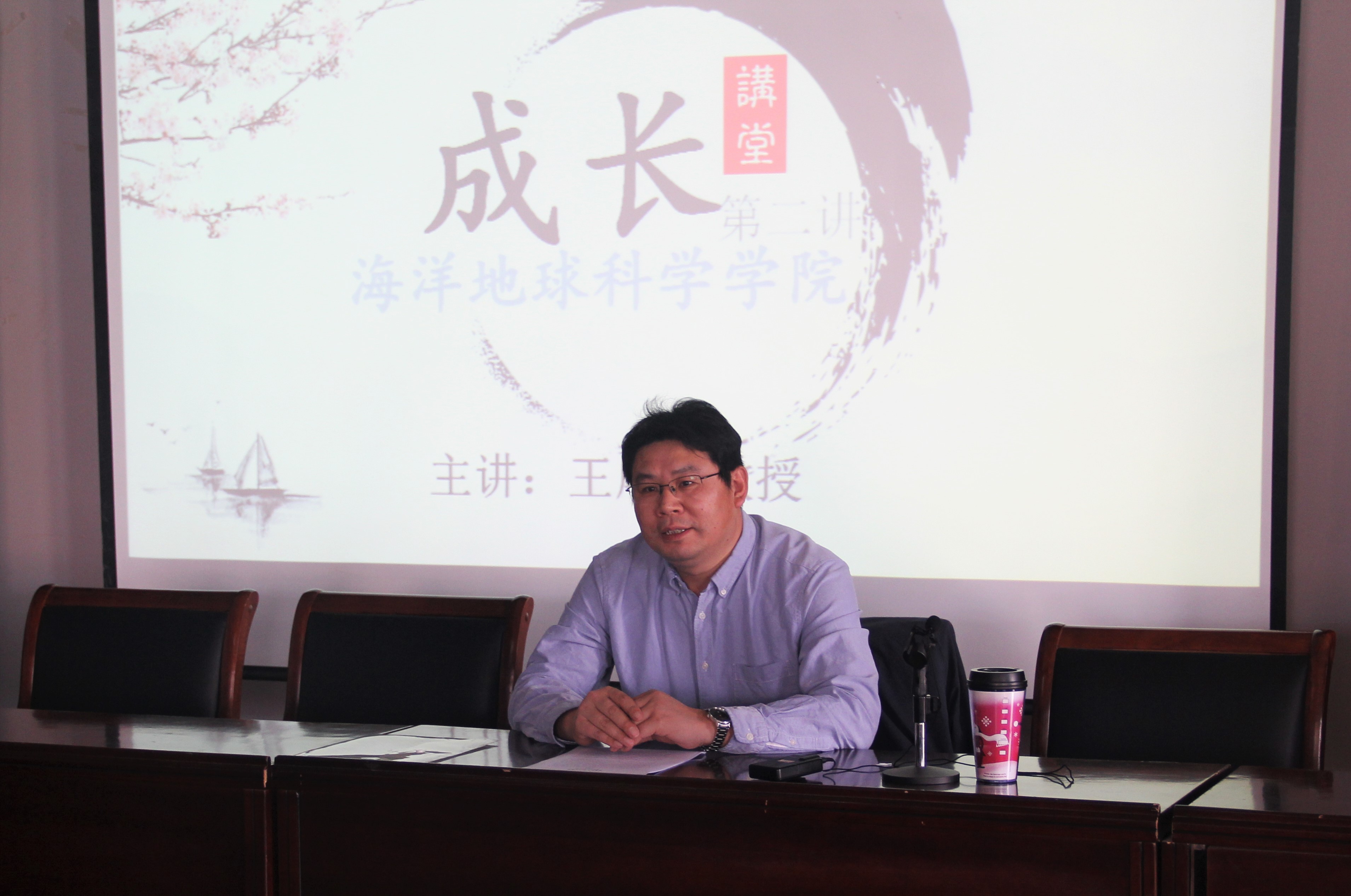 4月13日下午,海洋地球科学学院(以下简称“地院”)“成长讲堂”第二讲开讲。地院常务副院长王厚杰教授作为主讲嘉宾,围绕着“读书与修养”这一话题展开了精彩的演讲,引起了同学们的共鸣,激发了同学们的阅读兴趣。地院党委副书记张殿镇主持了本次活动。