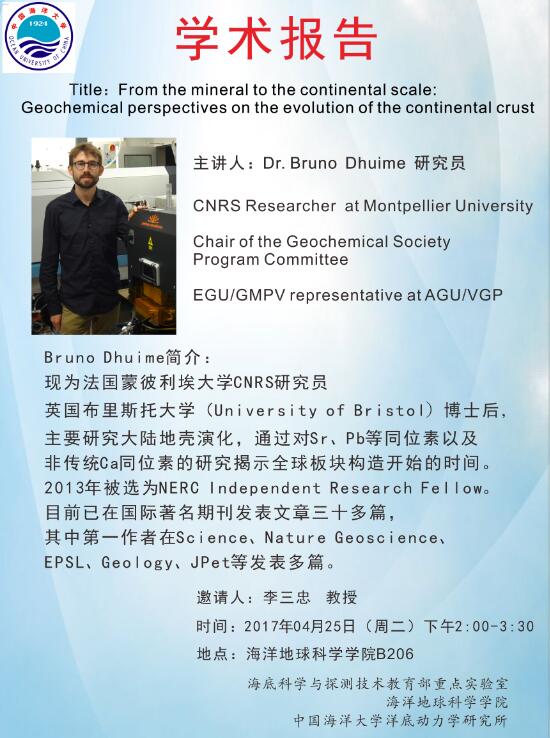 通讯地址:青岛市崂山区松岭路238号 海洋地球科学学院 邮编:266100 电话/传真:0532-66782488