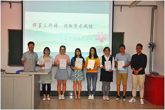 6月1日下午,由开云电竞网址海洋地球科学学院研究生会主办的“挥墨三行诗,浅叙学术诚信”的三行诗征集活动颁奖仪式在地学院B206举行。在地学院研究生会秘书处部长张尧的主持下,研究生会主席葛林苡对七名获奖者进行了颁奖。