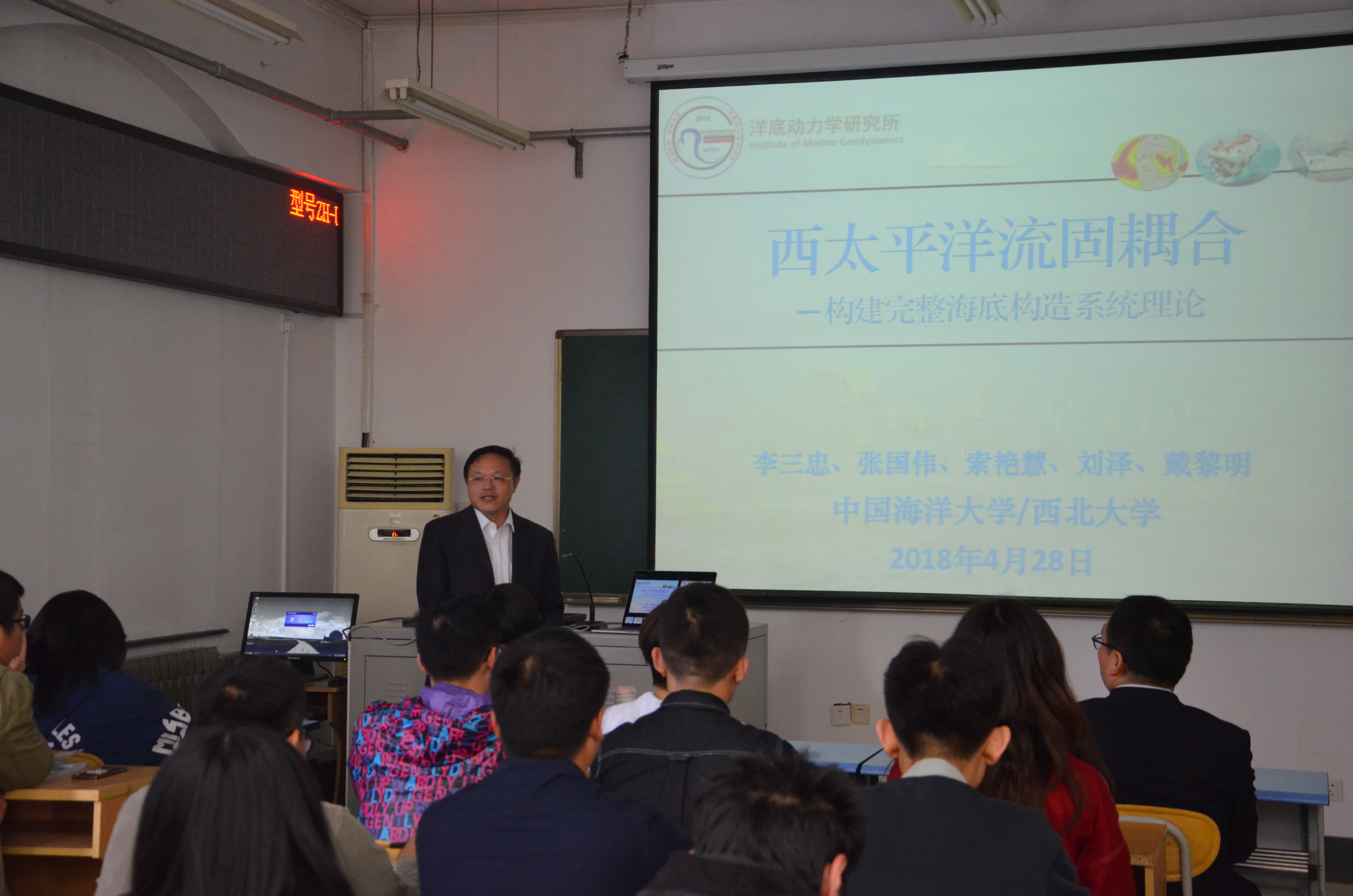 4月28日下午2点,海洋地球科学学院(以下简称“地院”)成长讲堂第16讲在地院B206教室精彩开讲,本期成长讲堂的主讲嘉宾为李三忠教授,由地院党委副书记张殿镇主持。