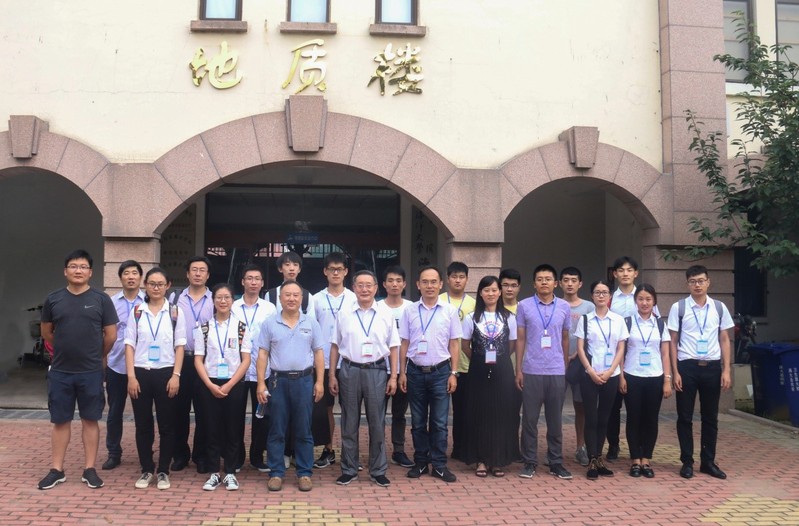 参赛嘉宾、老师和同学们在海洋地球科学学院门口合影留念