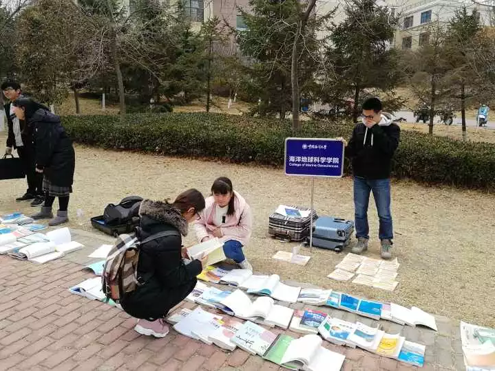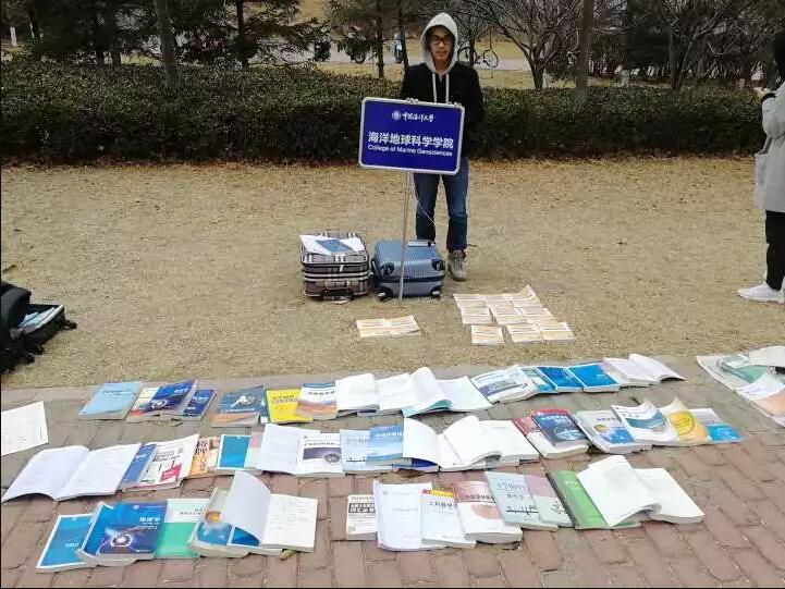 3月15日上午,由化学化工学院自强社主办,海洋与大气学院、海洋地球科学学院协办的旧书循环利用卖书活动——“二手书跳蚤市场”在樱花大道举行。