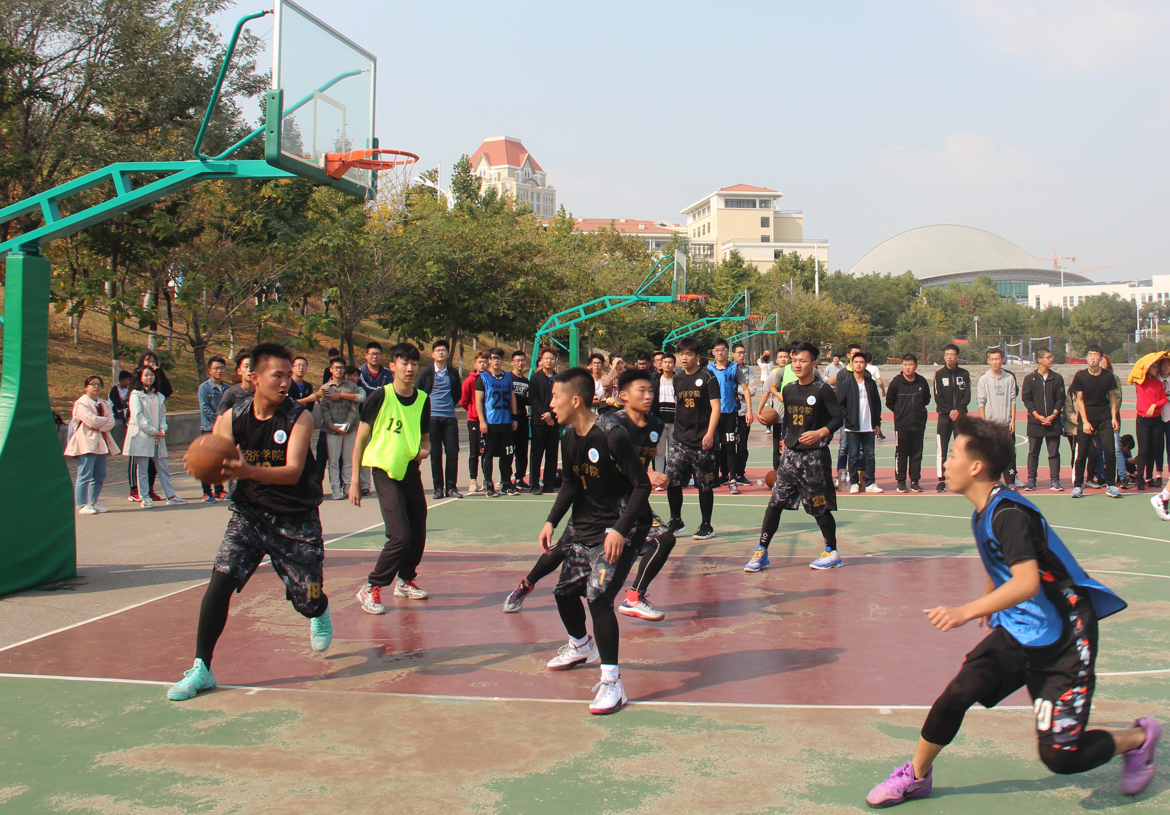 本站讯10月13日上午,“校庆杯”篮球小组赛海洋地球科学学院篮球队(以下简称“地院队”)对阵经济学院篮球队(以下简称“经院队”)于东区篮球场顺利举行。最终,地院队以74比54大胜经院队。