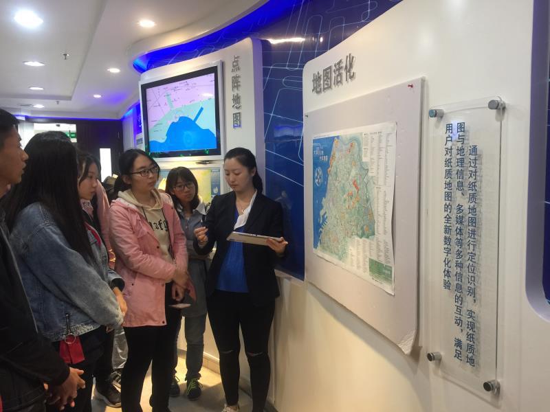 地理信息创意科技展厅里展示的电子地图,更是让大家眼前一亮。电子地图创造性地采用“地图+科技”模式,实现地理国情信息的实景聚合,增强了信息的可视化,满足了用户对于纸质地图的更多信息需求,也为宏观决策提供参考依据,是即时、高效、便捷的管理决策工具。在随后的参观中,同学们接触到了便于施工建设的虚拟现实城市建筑技术;为保障城市安全的信息化地下管线监控技术;实现辖区内人、事物可视化、流程化管理的“智慧社区”平台等地理信息产品,激发了他们的好奇心与想象力,对于未来的学习生活满怀憧憬;同时还让他们意识到科技源于生活,科技与生活密不可分。
