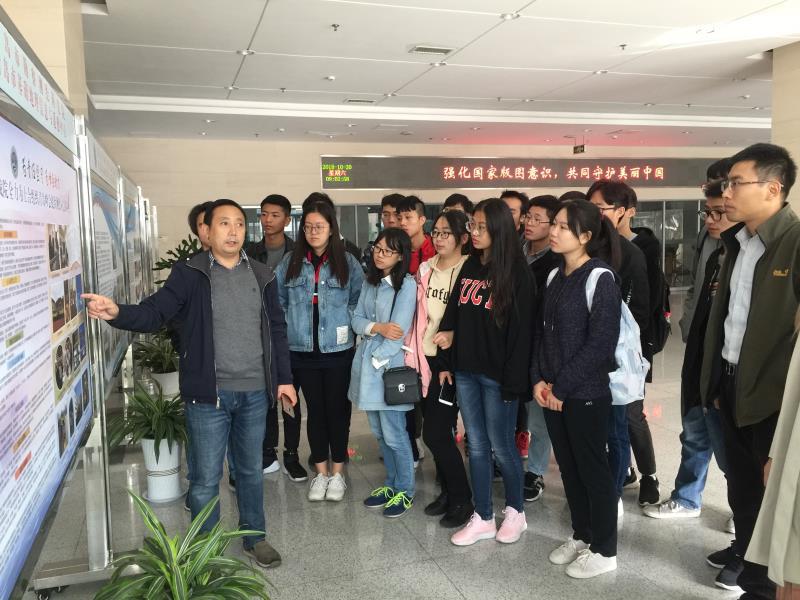 上午八时许,老师同学们从地质楼出发,前往本次课外教学第一站——青勘院。走进青勘院大厅,青勘院负责人王海银为大家进行讲解。他结合大厅的宣传栏,介绍了青勘院在上合组织青岛峰会期间所提供的测绘应急保障工作、青勘院的基本情况及全国测绘法宣传日的内容,让同学们对于青勘院、测绘行业,有了更直观的认识。