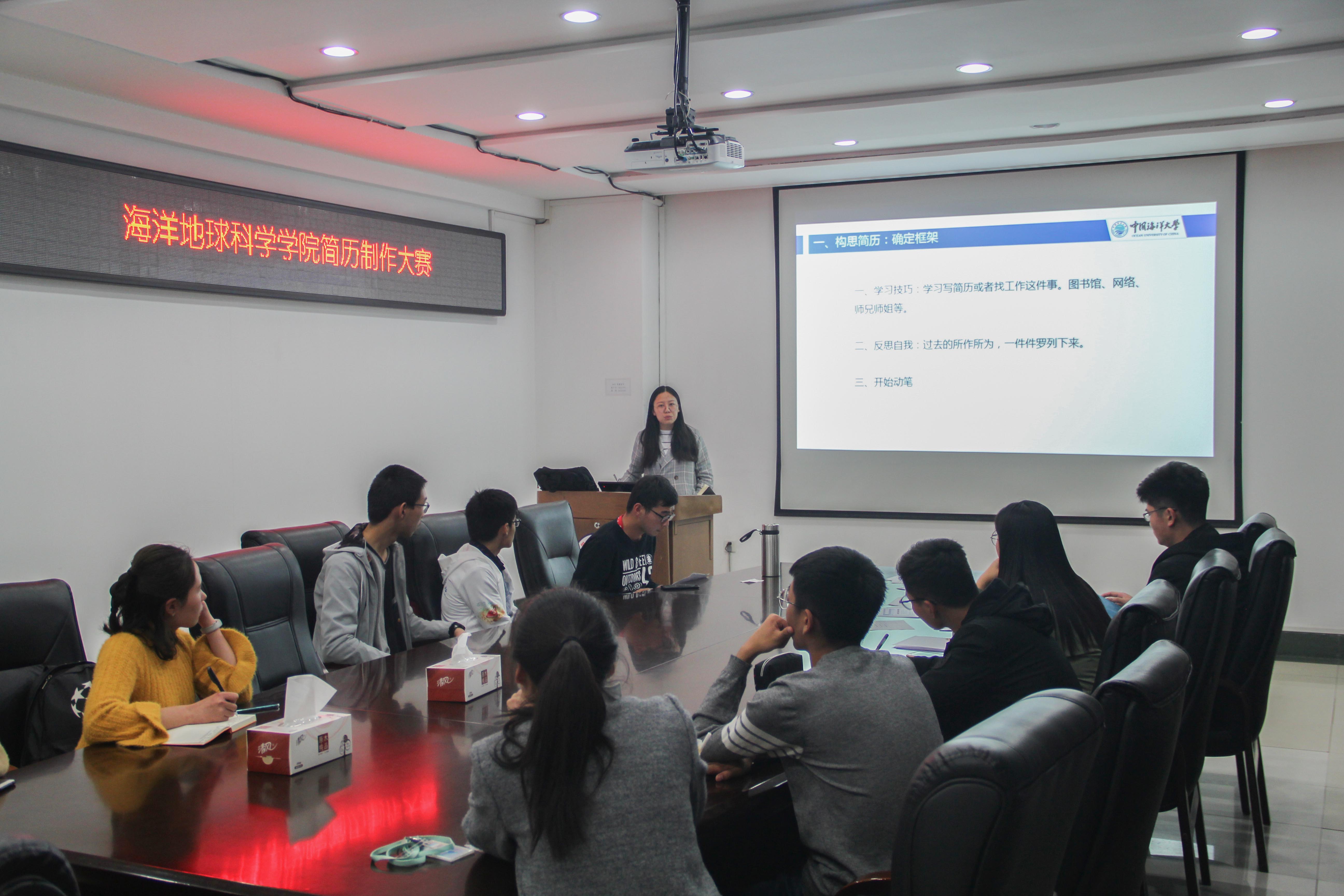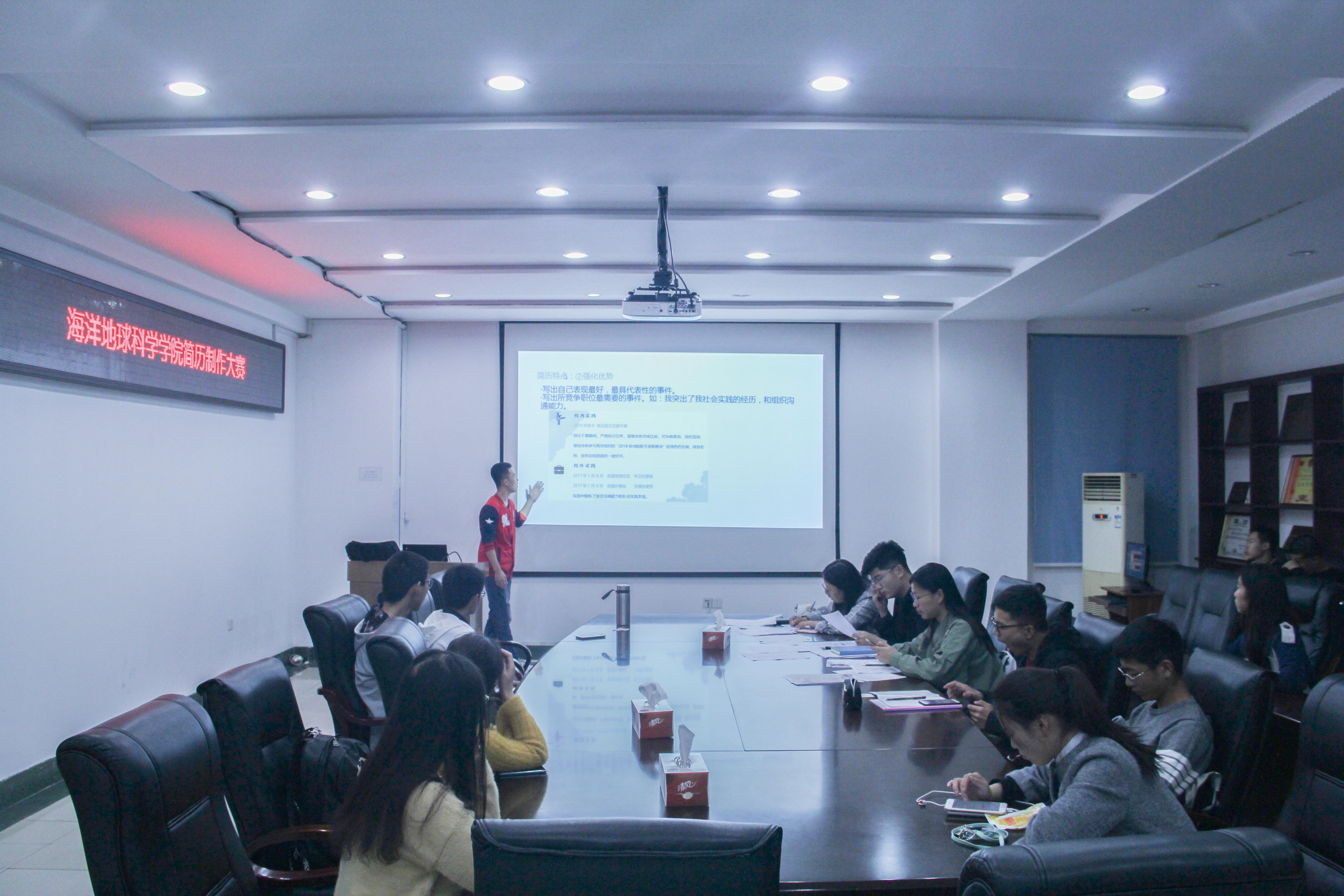 本站讯 为进一步提高同学们的简历制作水平,掌握更多的简历制作技巧,11月2日晚,由海洋地球科学学院团委主办、学院学生会承办的“简自我风采 历职场未来”简历制作大赛决赛在地质楼举办。