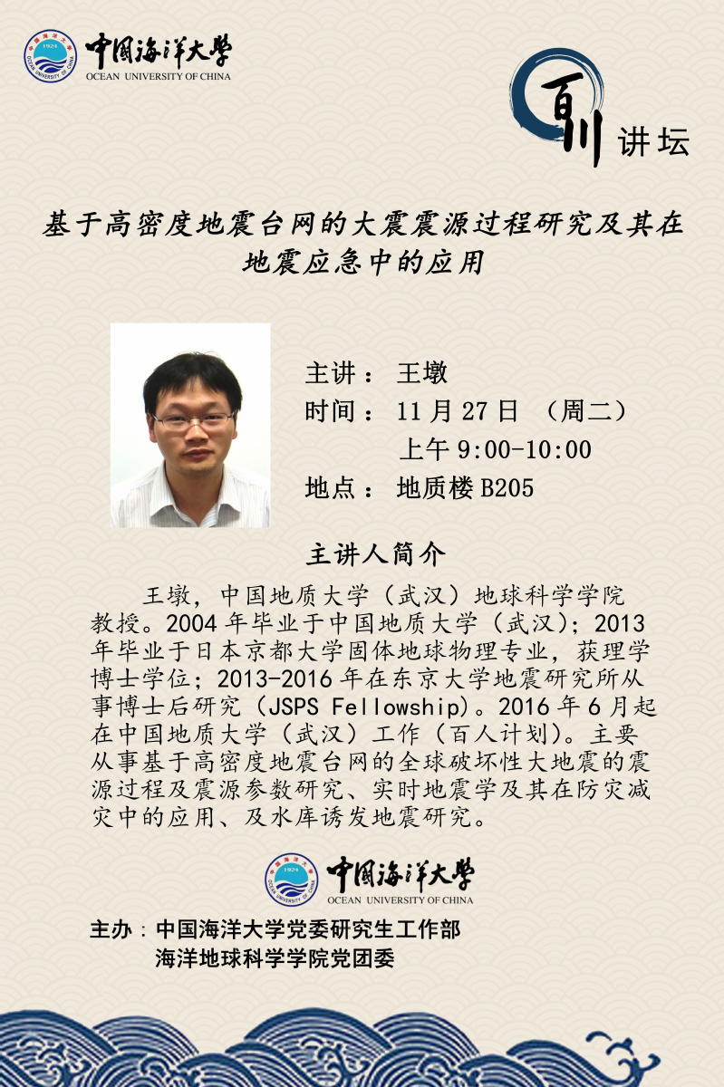 通讯地址:青岛市崂山区松岭路238号 海洋地球科学学院 邮编:266100 电话/传真:0532-66782488