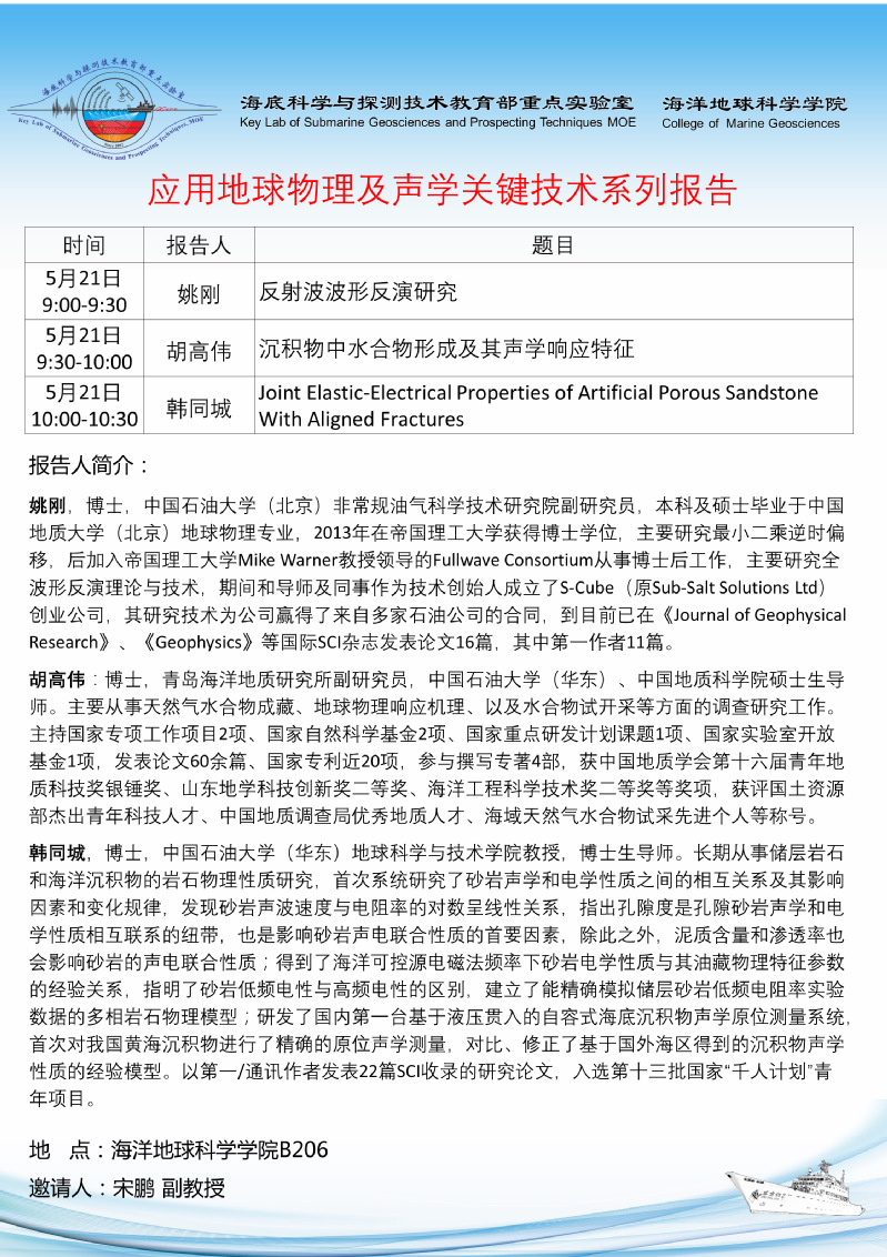 通讯地址:青岛市崂山区松岭路238号 海洋地球科学学院 邮编:266100 电话/传真:0532-66782488